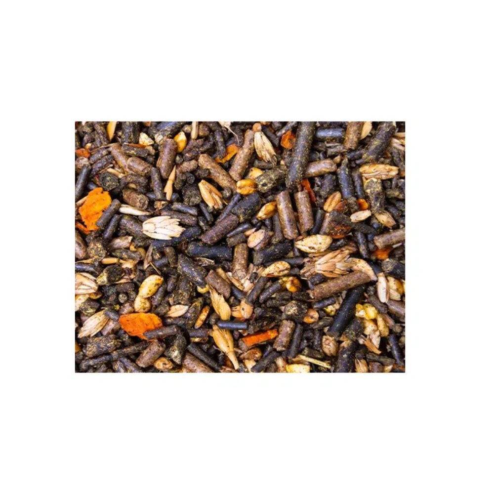 - Zahnschonend: Leicht verdauliches Müsli, das bei Bedarf auch als Mash (eingeweicht) gereicht werden kann.