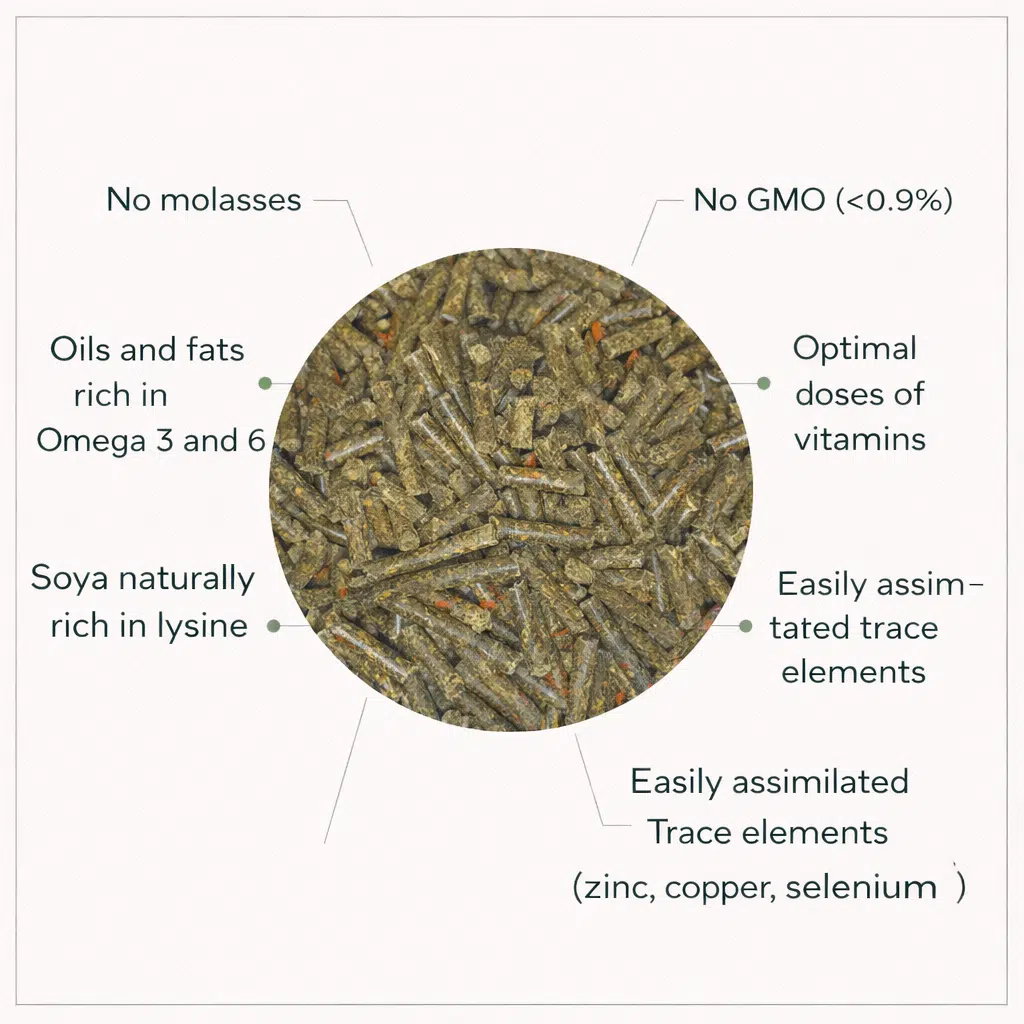 Dieses Futter dient als hochwertiger Ausgleich zum Heu und deckt den täglichen Bedarf an essentiellen Nährstoffen.