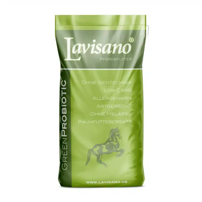 | Als Raufutterersatz | Täglich 1,0 kg Lavisano GreenProbiotic je 100 kg Soll-Körpergewicht. |